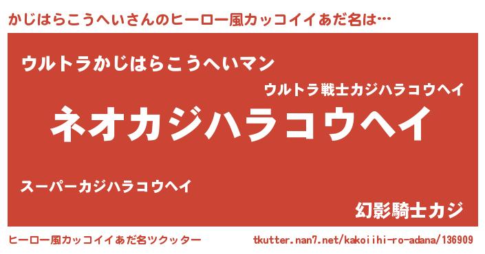 かじはらこうへいさんのヒーロー風カッコイイあだ名をツクッター!