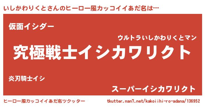 | 男性向けラノベタイトル風あだ名 | 『Re:いしかわりくとから始める異世界生活』 |