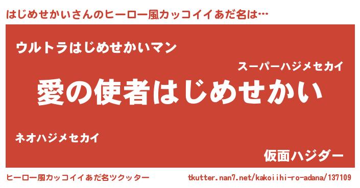 | 男性向けラノベタイトル風あだ名 | 『ノーゲーム・ノーハジメセカイ』 |