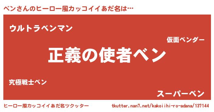 | ヘコむあだ名 | 『つくし』『ベンにー』『ベン(苦笑)』 |