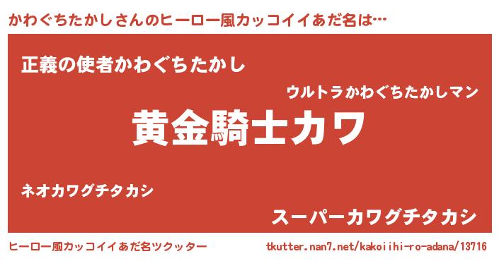 | 意味不明あだ名 | 『とにかく怪しいかわぐちたかし』 |