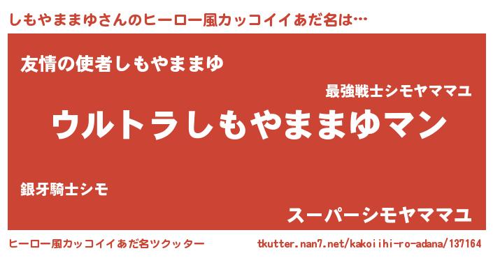 | 欧米人風あだ名 | 『しもやままゆ・ステッグマイヤー』 |