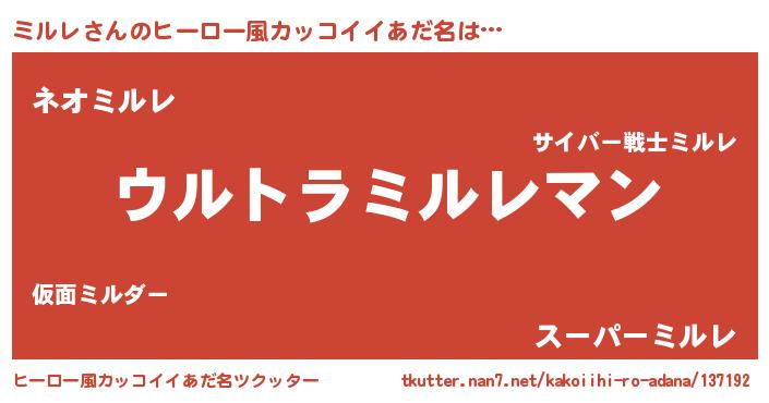 | 男性向けラノベタイトル風あだ名 | 『はたらくミルレさま!』『ミルレの憂鬱』 |