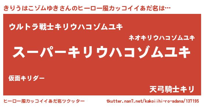 | 男性向けラノベタイトル風あだ名 | 『きりうはこゾムゆきの憂鬱』 |