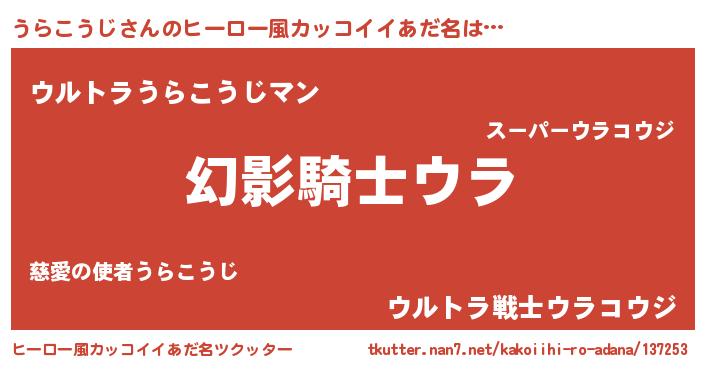 | 男性向けラノベタイトル風あだ名 | 『うらこうじに滅ぼされるだけの簡単なお仕事です』 |