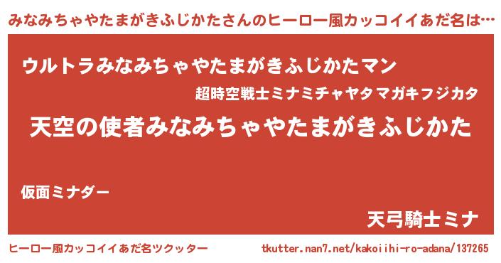 | 女子向けラノベタイトル風あだ名 | 『死神みなみちゃやたまがきふじかたの再婚』 |