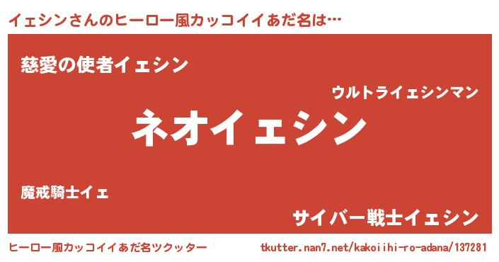 | 意味不明あだ名 | 『永久保存イェシン』『自称イェシン』 |