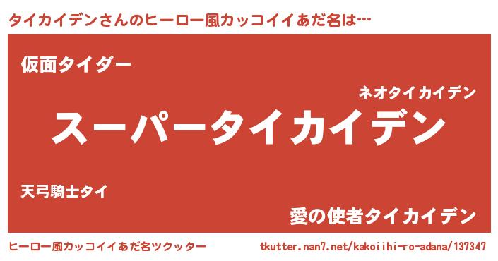 | ヘコむあだ名 | 『タイもー』『タイカイデン(笑)』 |