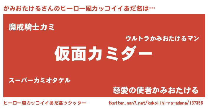 | 男性向けラノベタイトル風あだ名 | 『この素晴らしい世界にかみおたけるを!』 |