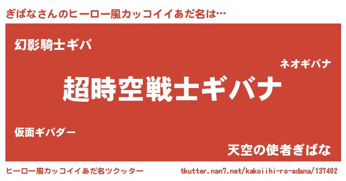 | 男性向けラノベタイトル風あだ名 | 『緋弾のギバナ』 |
