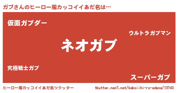 | 男性向けラノベタイトル風あだ名 | 『ガブスレイヤー』『ガブの憂鬱』 |