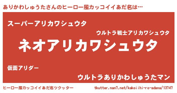 | ヘコむあだ名 | 『ありかわしゅうた(小並感)』『ありにゅー』 |