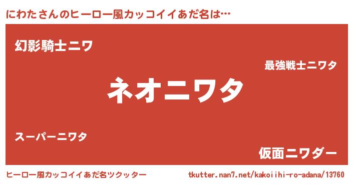 | ポケモン風あだ名 | 『ニワゴンZ』『ゼニニワ』『ヒニワタ』 |