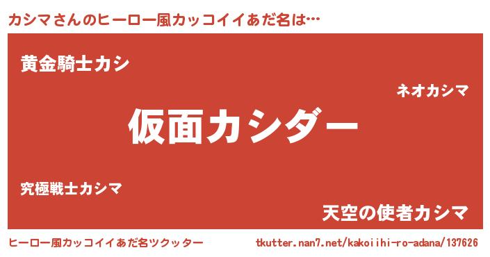 | 男性向けラノベタイトル風あだ名 | 『この素晴らしい世界にカシマを!』 |