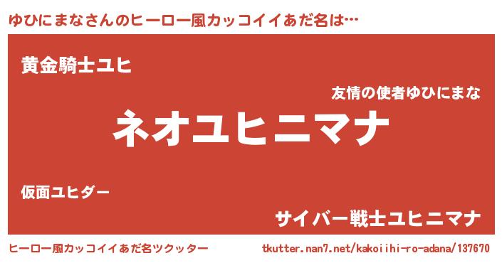 | ポケモン風あだ名 | 『ゼニユヒ』『ヒユヒニマナ』 |
