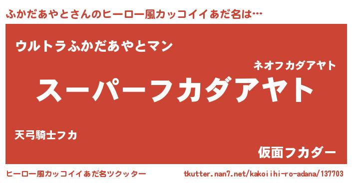 | 男性向けラノベタイトル風あだ名 | 『ふかだあやとの憂鬱』 |