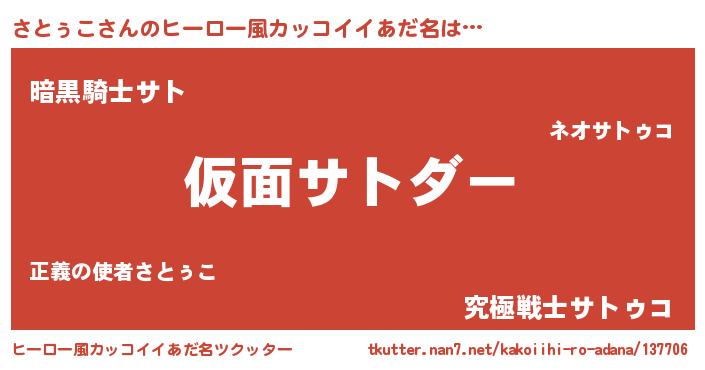 | 男性向けラノベタイトル風あだ名 | 『この素晴らしい世界にさとぅこを!』 |
