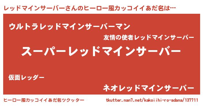 | 胡散臭い通販商品みたいなあだ名 | 『必ず成功するブレスレット…その名も「レッドマインサーバー」』 |