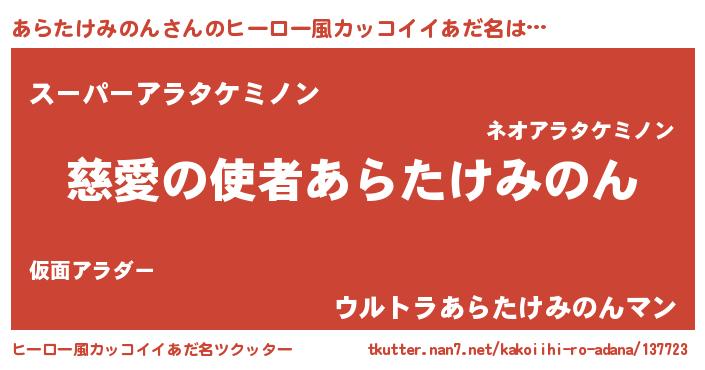 | 女子向けラノベタイトル風あだ名 | 『あらたけみのん恋絵巻』 |