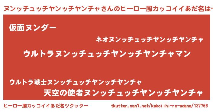 | 男性向けラノベタイトル風あだ名 | 『やはりヌンッチュッチヤンッチヤンチャの青春ラブコメはまちがっている 』 |