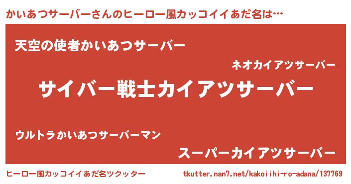 | 意味不明あだ名 | 『自称かいあつサーバー』 |