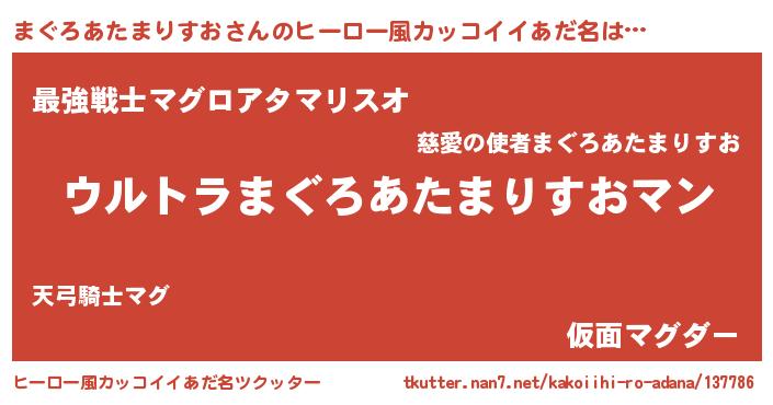 | ファンタジー風あだ名 | 『エターナルマグロアタマリスオー』 |