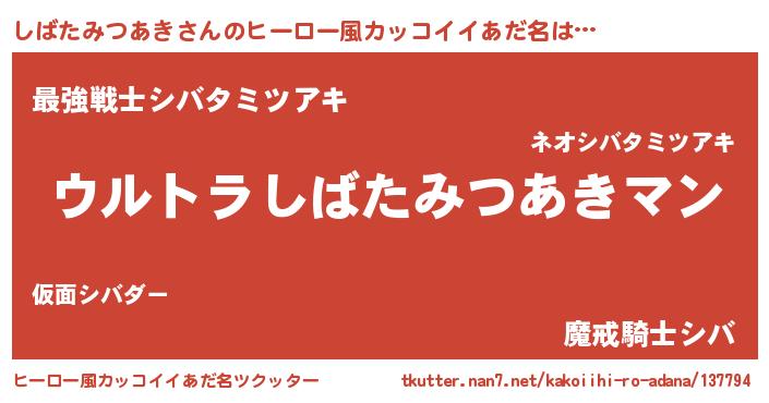 | ファンタジー風あだ名 | 『エターナルシバタミツアキー』 |