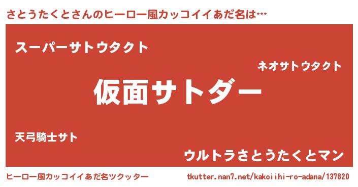 | 男性向けラノベタイトル風あだ名 | 『この素晴らしい世界にさとうたくとを!』 |