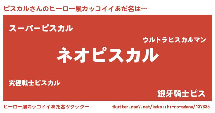 | 男性向けラノベタイトル風あだ名 | 『ピスカルという概念が存在しない退屈な世界 』 |