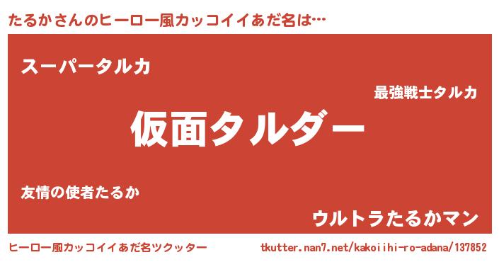 | 意味不明あだ名 | 『住所不定無職たるか(12歳)』『自称たるか』 |