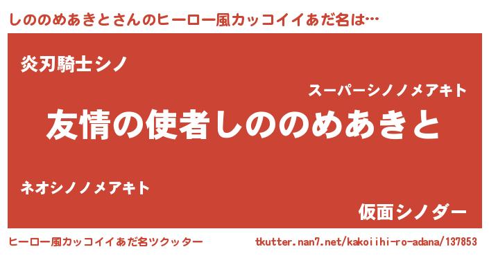 | 男性向けラノベタイトル風あだ名 | 『おまえをオタクにしてやるから、俺をしののめあきとにしてくれ! 』 |