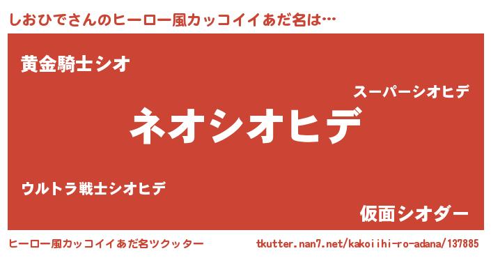 | 男性向けラノベタイトル風あだ名 | 『しおひでという概念が存在しない退屈な世界 』 |