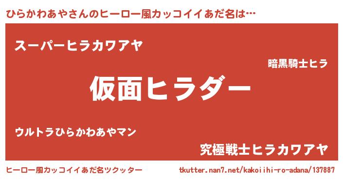 | 男性向けラノベタイトル風あだ名 | 『この素晴らしい世界にひらかわあやを!』 |