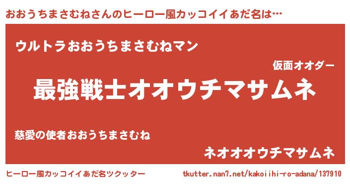 | 意味不明あだ名 | 『自称おおうちまさむね』 |