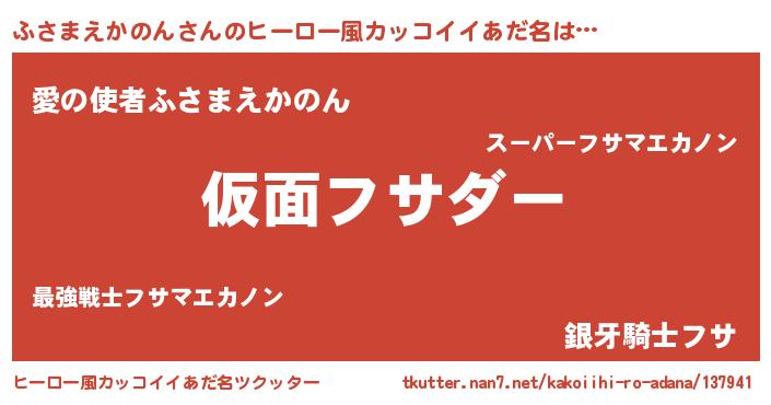 | 女子向けラノベタイトル風あだ名 | 『悪役ふさまえかのんに転生したようですが、知った事ではありません』 |