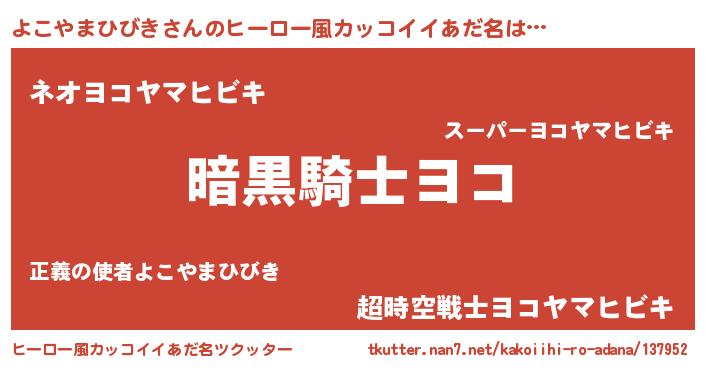 | ポケモン風あだ名 | 『ヒヨコヤマヒビキ』『ヨコゴンZ』 |
