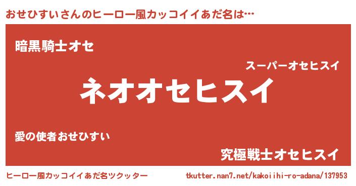 | 男性向けラノベタイトル風あだ名 | 『おせひすいという概念が存在しない退屈な世界 』 |