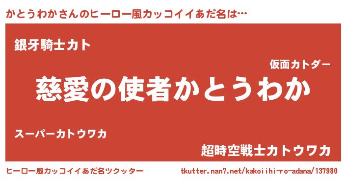 | 男性向けラノベタイトル風あだ名 | 『ノーゲーム・ノーカトウワカ』 |