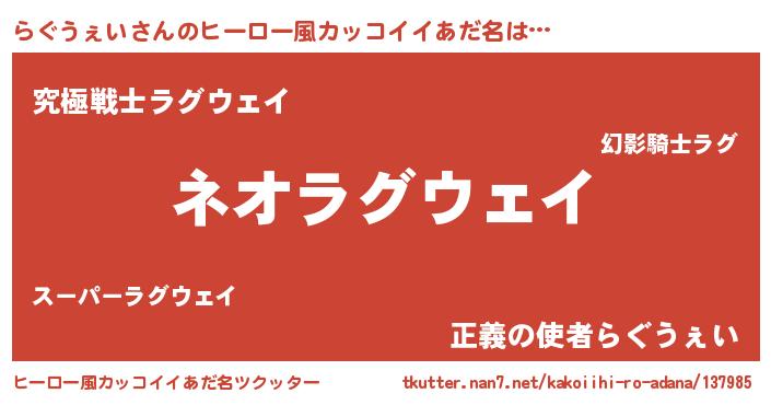 | ヘコむあだ名 | 『らぐうぇい(笑)』『らぐっぺ』 |