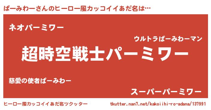 | 意味不明あだ名 | 『自称ぱーみわー』『永久保存ぱーみわー』 |