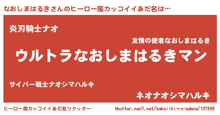 | 男性向けラノベタイトル風あだ名 | 『はたらくなおしまはるきさま!』 |