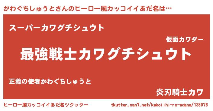 | 意味不明あだ名 | 『自称かわぐちしゅうと』 |