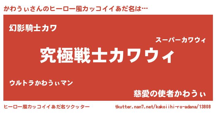 | 男性向けラノベタイトル風あだ名 | 『かわうぃ~年齢イコール彼女いない歴の魔法使い~』 |