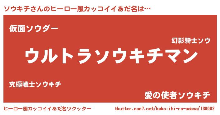 | 男性向けラノベタイトル風あだ名 | 『やはりソウキチの青春ラブコメはまちがっている 』 |
