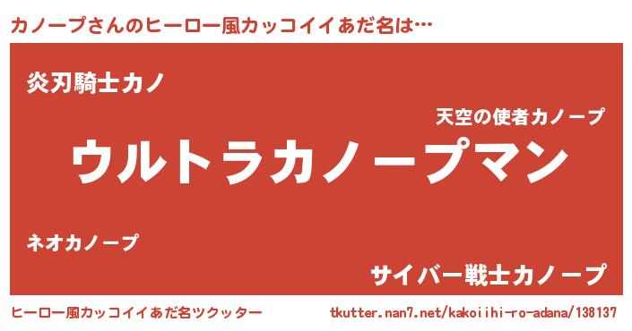 | ファンタジー風あだ名 | 『エターナルカノープー』『ゼカノトゥ』 |