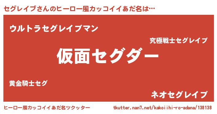 | 男性向けラノベタイトル風あだ名 | 『この素晴らしい世界にセグレイブを!』 |