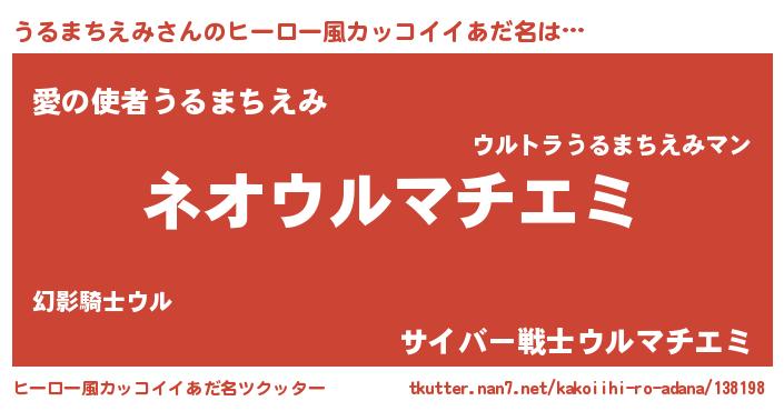 | 意味不明あだ名 | 『永久保存うるまちえみ』 |