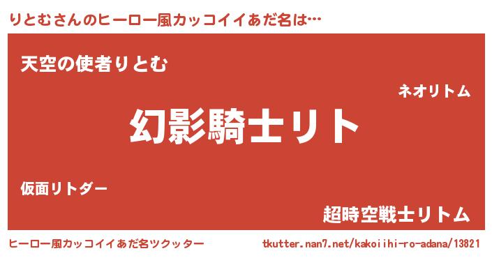 | 男性向けラノベタイトル風あだ名 | 『りとむの嫁は女の子じゃないと思った?』 |