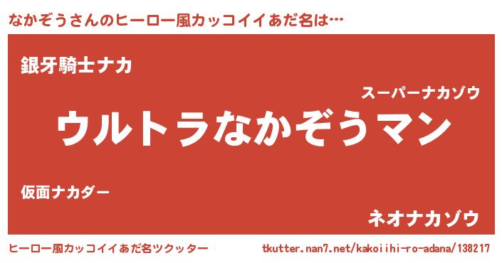 | 男性向けラノベタイトル風あだ名 | 『やはりなかぞうの青春ラブコメはまちがっている 』 |
