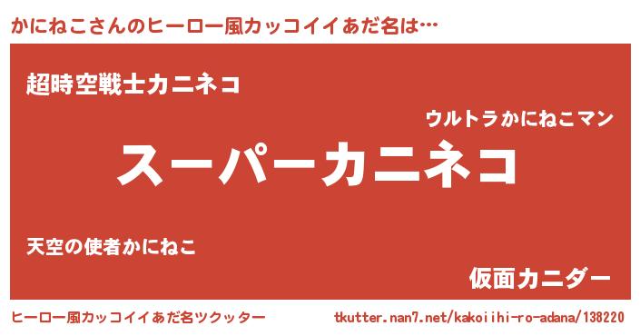 | 男性向けラノベタイトル風あだ名 | 『うちのかにねこが世界を掌握している!』 |